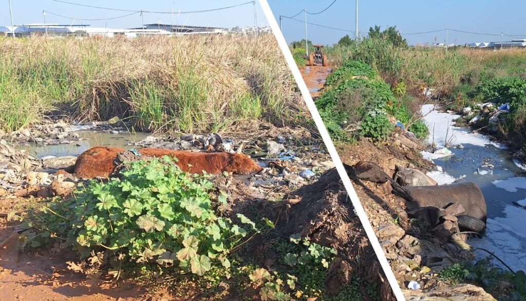 جنين – صحفيون عرب من اجل المناخ – رامي دعيبس – تتعرض منطقة مجرى واد المقطع العابر لمرج ابن عامر، وهو شريان حيوي في “سلة فلسطين الخضراء”، لانتهاكات بيئية جسيمة تتمثل في التعدي على حدود المجرى وإلقاء النفايات الصلبة وجثث الحيوانات النافقة من الأبقار والأغنام بشكل عشوائي. ويؤدي وجود هذه الجثث إلى خلق بيئة مثالية لتكاثر الكلاب الضالة والخنازير البرية، حيث توفر لها مصدرًا غذائيًا مستدامًا، علماً أن الحد من هذه الظاهرة يساهم بشكل مباشر في مكافحة أعداد الكلاب الضالة. وبالإضافة إلى ذلك، تسبب الحيوانات النافقة الملقاة في مجرى الوادي انتشار العديد من الأمراض في المناطق الزراعية المحيطة، مما يشكل خطراً مباشراً على القطعان الأخرى التي ترعى في المنطقة وقد تدخل إلى المجرى.